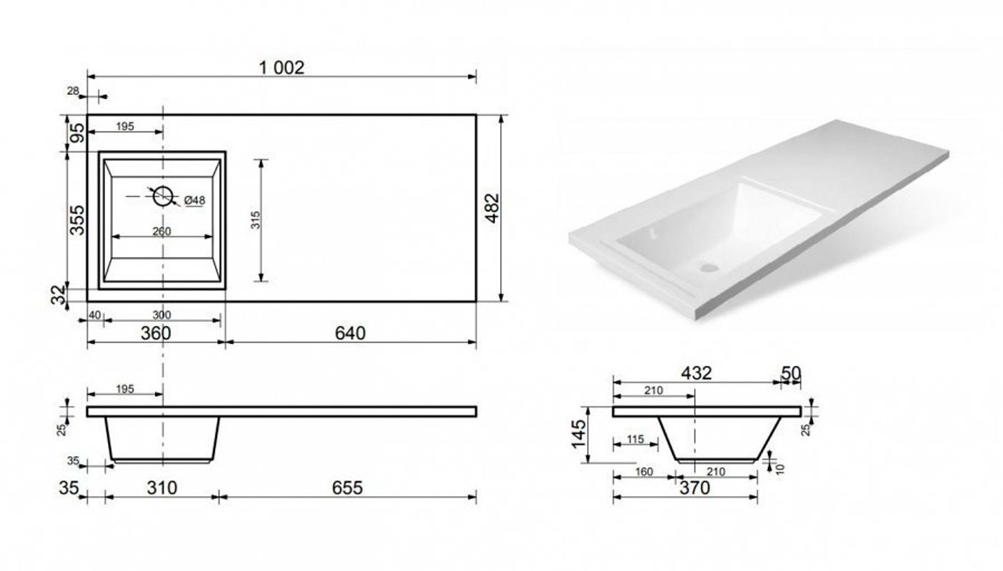 Для раковины Даллас 1000*480 левый