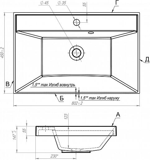 Раковина со слив-переливом.