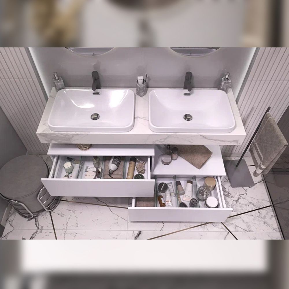 Тумба подвесная без столешницы Velvex Unit tp.UNI.80.1Y белый матовый, 80 см: 1 выдвижной ящик со стеклянными разделителями.