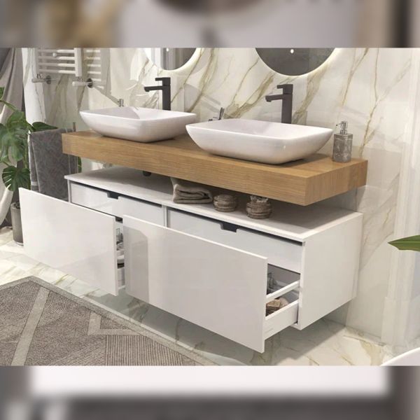 Тумба подвесная без столешницы Velvex Unit tp.UNI.80.2Y белый глянец, 80 см: 1 выдвижной ящик со стеклянными разделителями, 1 внутренний выдвижной ящик.