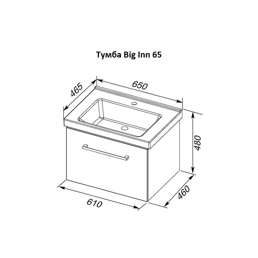 Тумба подвесная Dreja.Rus BIG INN 65 под умывальник Гармония 65, белый глянец