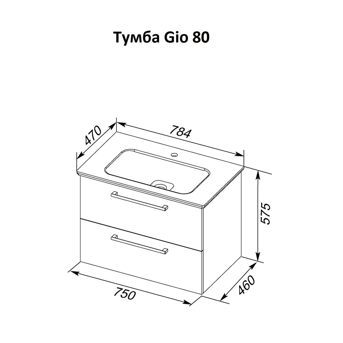 Тумба подвесная Dreja.Rus GIO 80 под умывальник Эйфория-80, дуб кантри