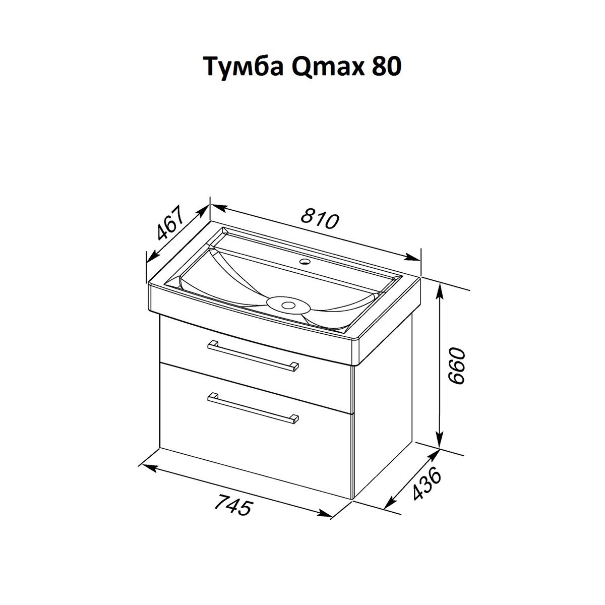 Тумба подвесная Dreja.Rus Q MAX 80 под умывальник Q-80, белый глянец купить