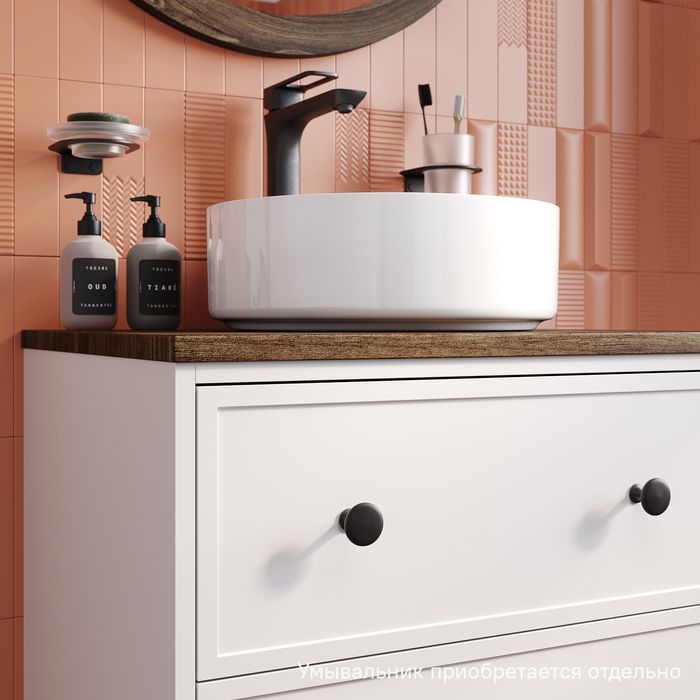 Компактная подвесная тумба Torr классического молочно-белого цвета со столешницей из МДФ в оттенке ореха макадамия. Сочетает в себе узнаваемый стиль и практичность популярного скандинавского дизайна. Ее четкие формы, теплый цвет дерева, фасады с декоративной филенкой, круглые ручки смотрятся гармонично и впишутся в любой современный интерьер. Подойдет любой накладной умывальник, покупается отдельно.