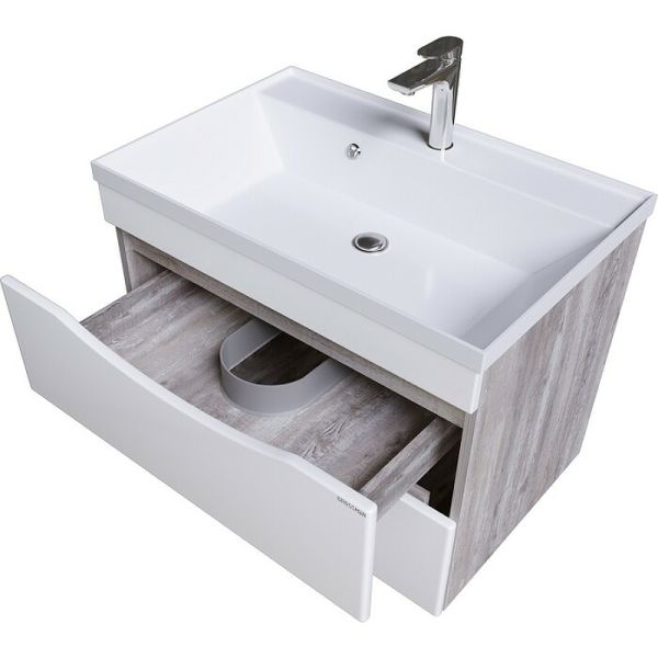 Тумба подвесная под раковину Grossman Талис 108014 80см бетон пайн/белый глянец