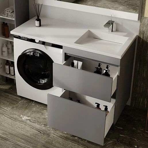 Тумба подвесная Style Line Даллас Леон 120 Люкс Plus СС-00002451 под раковину для стиральной машины серый купить
