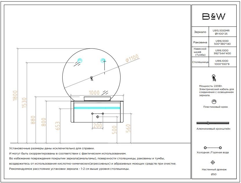 U 916– эксклюзивное и функциональное изделие в скандинавском стиле, которое наполнит ванную комнату уютом и гармонией, а скругленные углы корпуса и столешницы добавят нотки изящности.