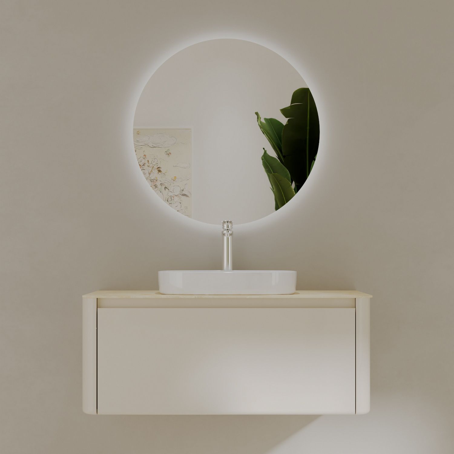 Минималистичная мебель датского производителя Black&White в габаритных размерах 100×55 см. Столешница выполнена из утонченного керамогранита стилизованного под натуральный мрамор кремового цвета в сочетании с белой основой . Полувстраиваемая раковина поставляется вместе с донным клапаном и изготавливается из сантехнического фарфора, а невысокие борта позволяют устанавливать смеситель любой высоты. База изготовлена из влагостойкого MDF и покрыта эмалью в цвете слоновая кость, а для открывания выдвижных ящиков установлены направляющие австрийской компании Blum. Комплект крепежа с крепежной планкой идет в комплекте.
