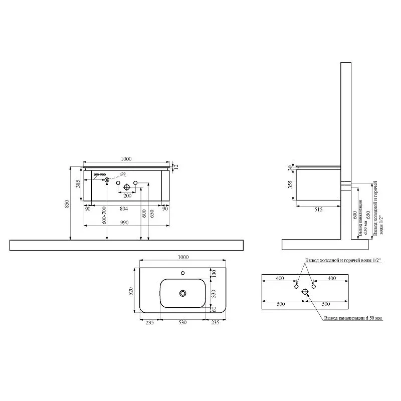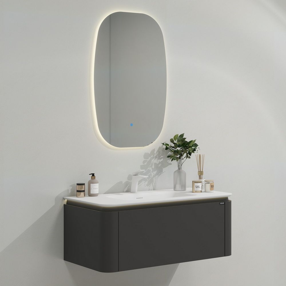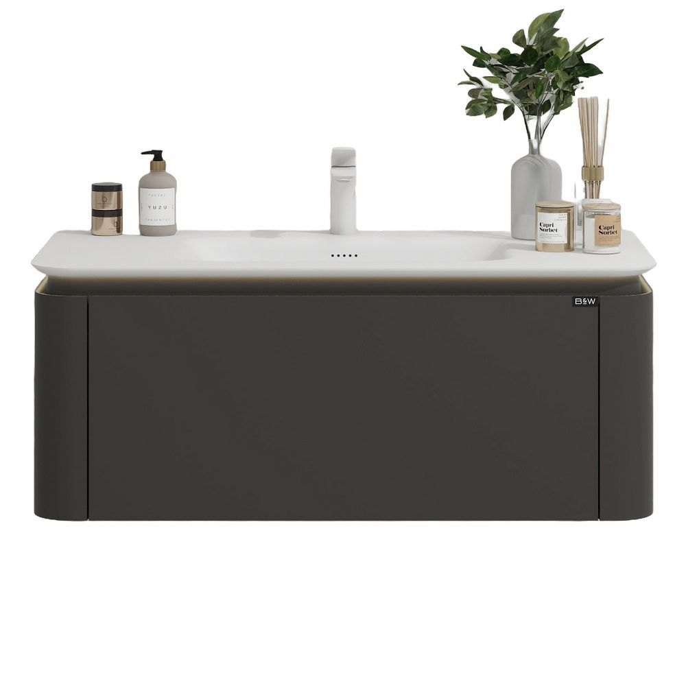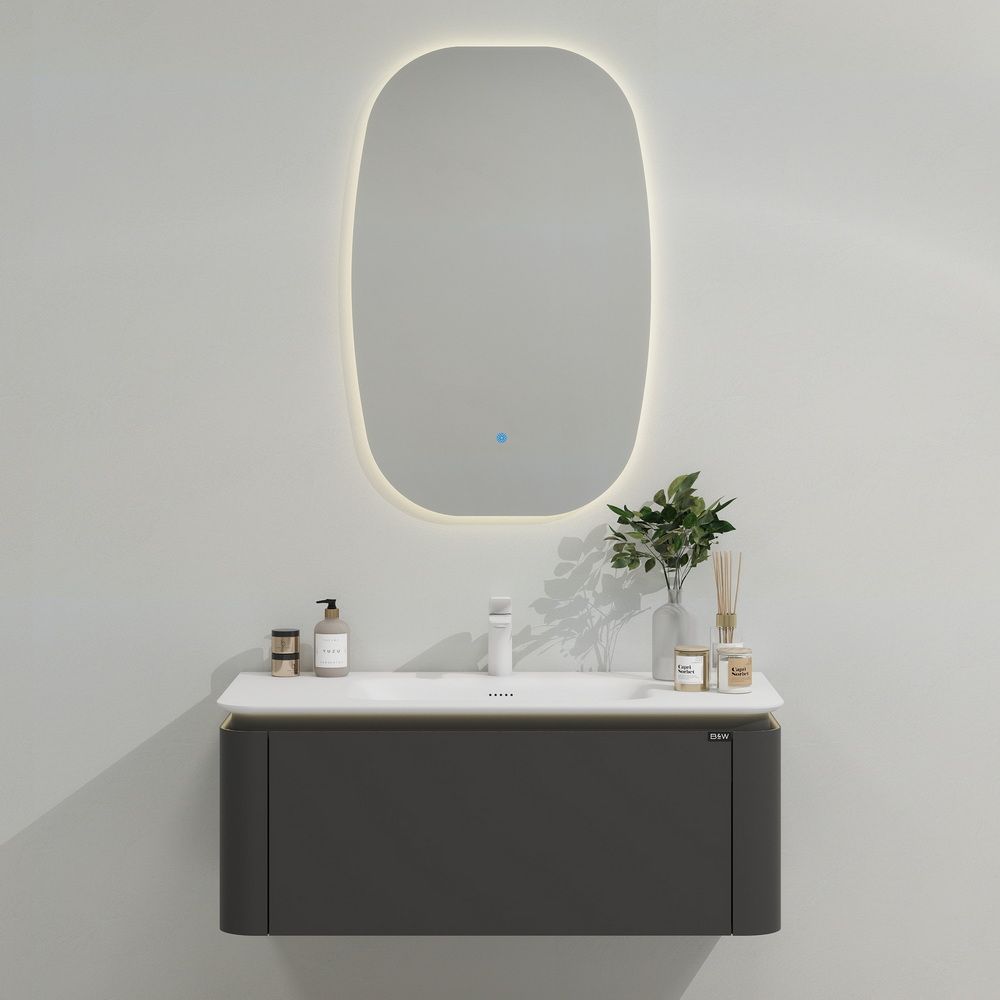 Тумба с раковиной для ванной комнаты датского производителя Black&White в габаритных размерах 100x52x40 см.Данная версия является продолжением линейки U 925 в сером цвете. Раковина — столешница изготовлена из не пористого искусственного камня Corian, который тактильно ощущается как soft touch материал, он легок и прост в уборке,а слив оборудован донным клапаном хромированного цвета. База производится из влагостойкой  девятислойной фанеры и покрыта эмалью для долгосрочного сохранения материала.Важной особенностью является контурная диодная подсветка, которая расположена по периметру столешницы.На тумбе предусмотрен один выдвижной ящик, оборудованный фурнитурой UniHopper с доводчиками.Коллекция U 935– эргономичный и продуманный продукт,который наполнит Вашу ванную комнату уютом, а плавные и утонченные формы впишутся в любые современные интерьеры.