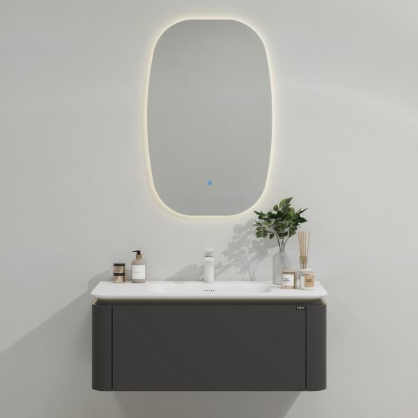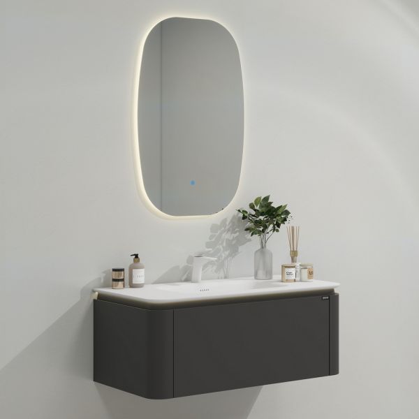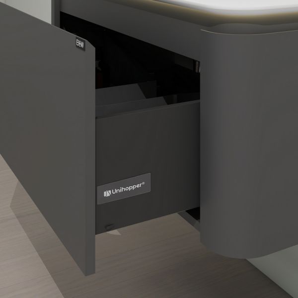 Тумба с раковиной для ванной комнаты датского производителя Black&White в габаритных размерах 120x52x40 см.Данная версия является продолжением линейки U 925 в сером цвете. Раковина — столешница изготовлена из не пористого искусственного камня Corian, который тактильно ощущается как soft touch материал, он легок и прост в уборке,а слив оборудован донным клапаном хромированного цвета. База производится из влагостойкой  девятислойной фанеры и покрыта эмалью для долгосрочного сохранения материала.Важной особенностью является контурная диодная подсветка, которая расположена по периметру столешницы.На тумбе предусмотрен один выдвижной ящик, оборудованный фурнитурой UniHopper с доводчиками.Коллекция U 935– эргономичный и продуманный продукт,который наполнит Вашу ванную комнату уютом, а плавные и утонченные формы впишутся в любые современные интерьеры.