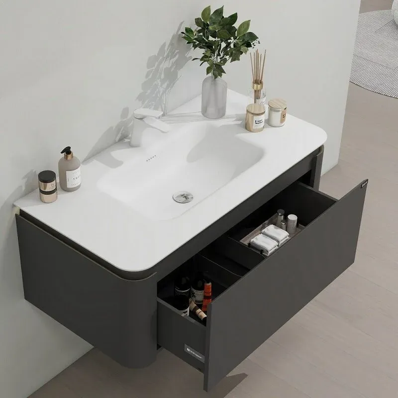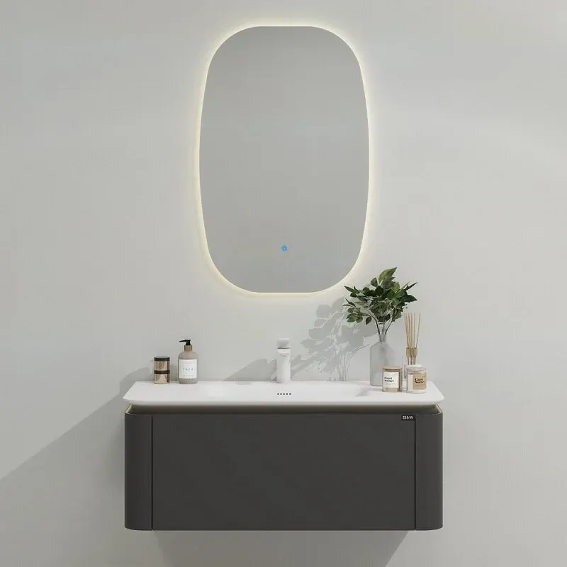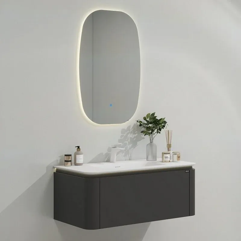 Тумба с раковиной для ванной комнаты датского производителя Black&White. Данная версия является продолжением линейки U 935 в сером цвете. Раковина — столешница изготовлена из не пористого искусственного камня Corian, который тактильно ощущается как soft touch материал, он легок и прост в уборке,а слив оборудован донным клапаном хромированного цвета. База производится из влагостойкой  девятислойной фанеры и покрыта эмалью для долгосрочного сохранения материала.Важной особенностью является контурная диодная подсветка, которая расположена по периметру столешницы.На тумбе предусмотрен один выдвижной ящик, оборудованный фурнитурой UniHopper с доводчиками.Коллекция U 935– эргономичный и продуманный продукт,который наполнит Вашу ванную комнату уютом, а плавные и утонченные формы впишутся в любые современные интерьеры.