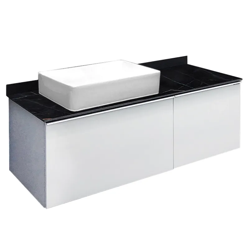 Тумба с раковиной Comforty Милан 00-00014005 120 см белыйХарактеристики: Тумба: Цвет: белый глянцевый. Цвет столешницы: под мрамор Калакатта Блэк. Материал тумбы: влагостойкий ЛДСП, МДФ. Материал столешницы: керамогранит. Организация хранения: два ящика с системой плавного закрывания. За правым фасадом ящик оснащен системой push-to-open (открытие при нажатии). Тумба подготовлена для подключения водоснабжения снизу. Монтаж: подвесной. Раковина-чаша: Цвет: белый. Материал: санфарфор. Форма: прямоугольная. В комплекте поставки: тумба, столешница, раковина-чаша Comforty 78189, крепежный комплект