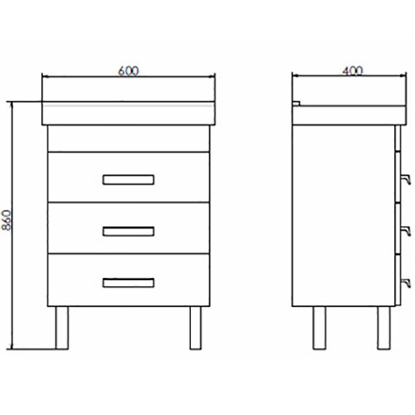 Габариты вместе с раковиной (ШхВхГ): 60x86x40 см.