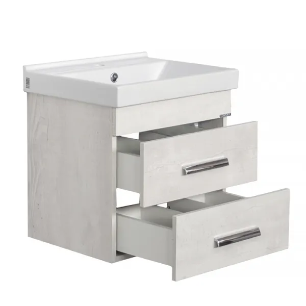 Тумба с раковиной Comforty Никосия 00-00017091 50 см дуб белыйПодвесная тумба с двумя выдвижными ящиками, оснащенным системой плавного закрывания. Тумба подготовлена для подключения водоснабжения снизу. Габариты (ШхВхГ): 500*520*400 мм. Комплектация: керамическая раковина Fest 50