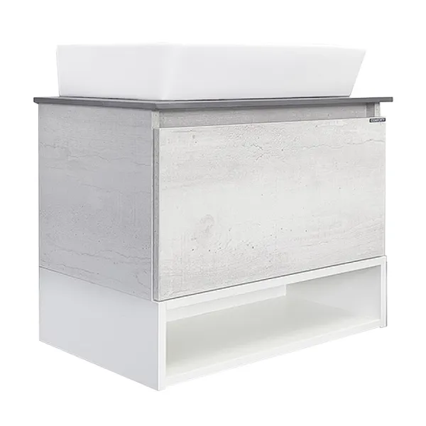 Тумба с раковиной Comforty Прага 00-00014535 60 см СерыйТумба с раковиной. Цвет: дуб белый, белый глянец. Цвет столешницы: графит. Материал столешницы: керамогранит. Организация хранения: ящик с системой плавного закрывания, открытая полка. В комплект поставки входит: тумба со столешницей, раковина Comforty 9055RA-50, крепежный комплект