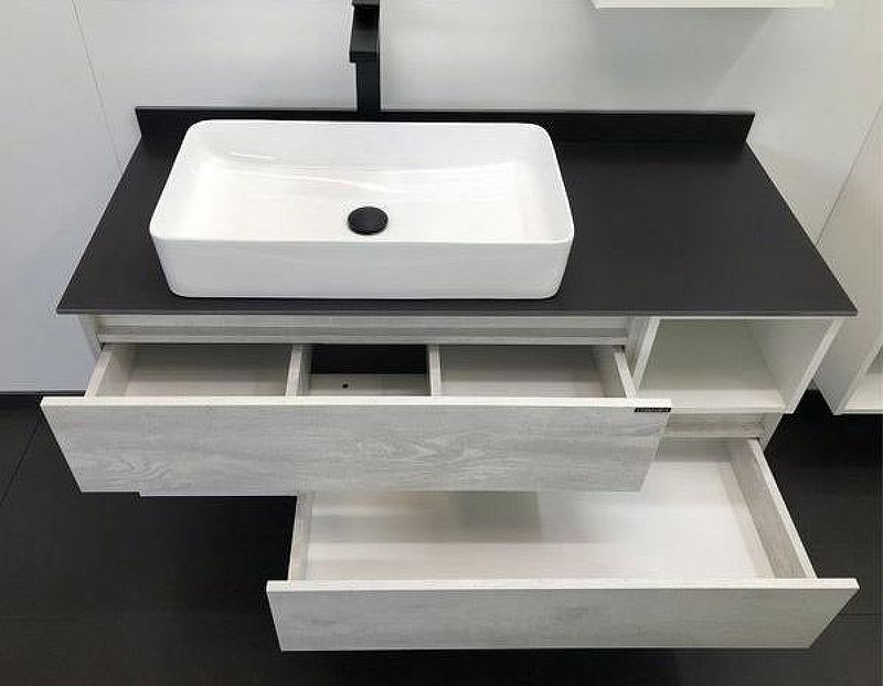 Тумба с раковиной Comforty Прага 00-00014833 120 см Дуб белыйТумба-умывальник в современном стиле с двумя выкатными ящиками и пространством для открытого хранения. Ящики оснащены направляющими с системой с плавного закрывания. Тумба укомплектована столешницей и плинтусом из керамогранита цвета графит.Характеристики:Тумба:Цвет: дуб белый.