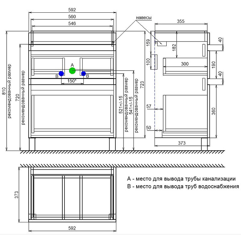 Размеры (ШхВхГ): 592х945х373 мм.