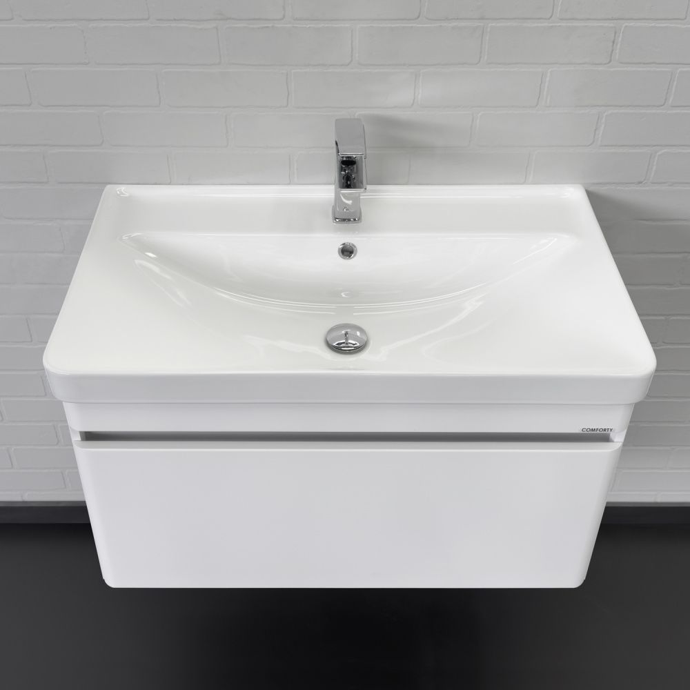 Тумба-умывальник Comforty подвесная Валдай-80П белая матовая с раковиной Comforty 4480 купить