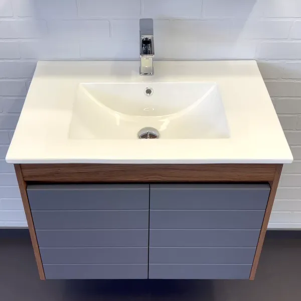 Тумба-умывальник Comforty Кемер-75 антрацит/дуб тёмно-коричневый с раковиной Comforty 75E