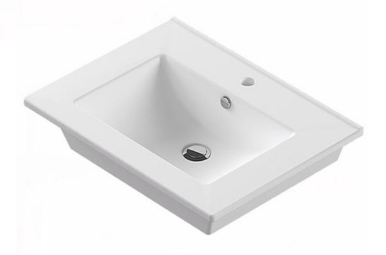 Раковина Comforty 9060M, фарфор, прямоугольная, с отверстием под смеситель, белая