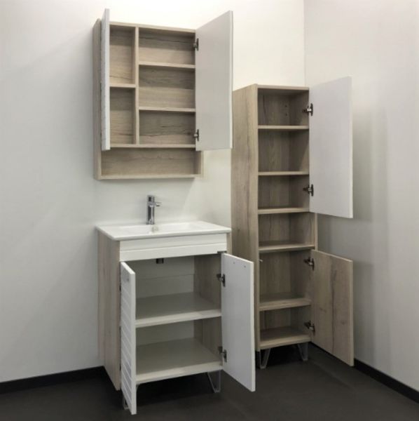 Тумба-умывальник Comforty Клеон 60Н белый/дуб дымчатый с раковиной Quadro 60 Подробнее