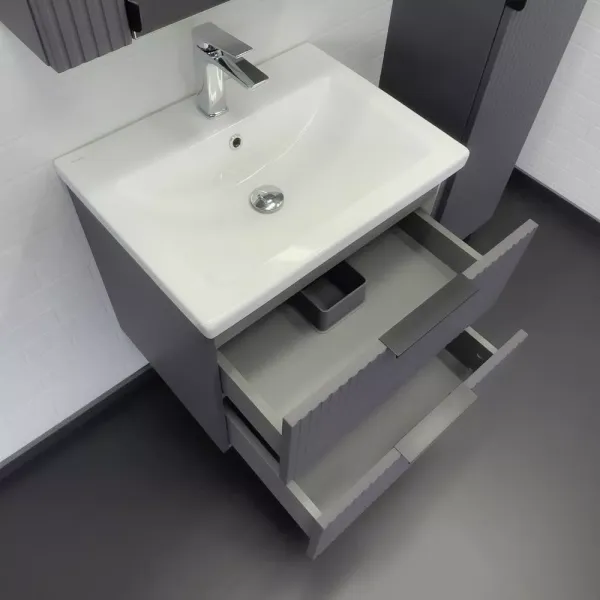 Тумба-умывальник Comforty Лима-60П2 антрацит с раковиной Como 60