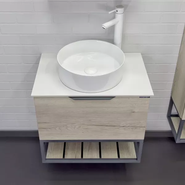 Тумба-умывальник Comforty Порто-60 дуб дымчатый с белой столешницей c раковиной Comforty 9111 00-00011397 купить