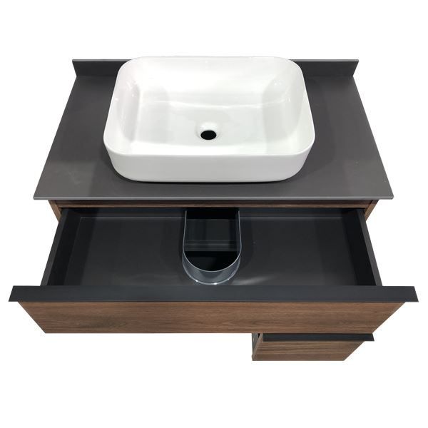 Тумба-умывальник COMFORTY Штутгарт-90 00-00002868, дуб тёмно-коричневый с черной столешницей c раковиной COMFORTY T-Y9378