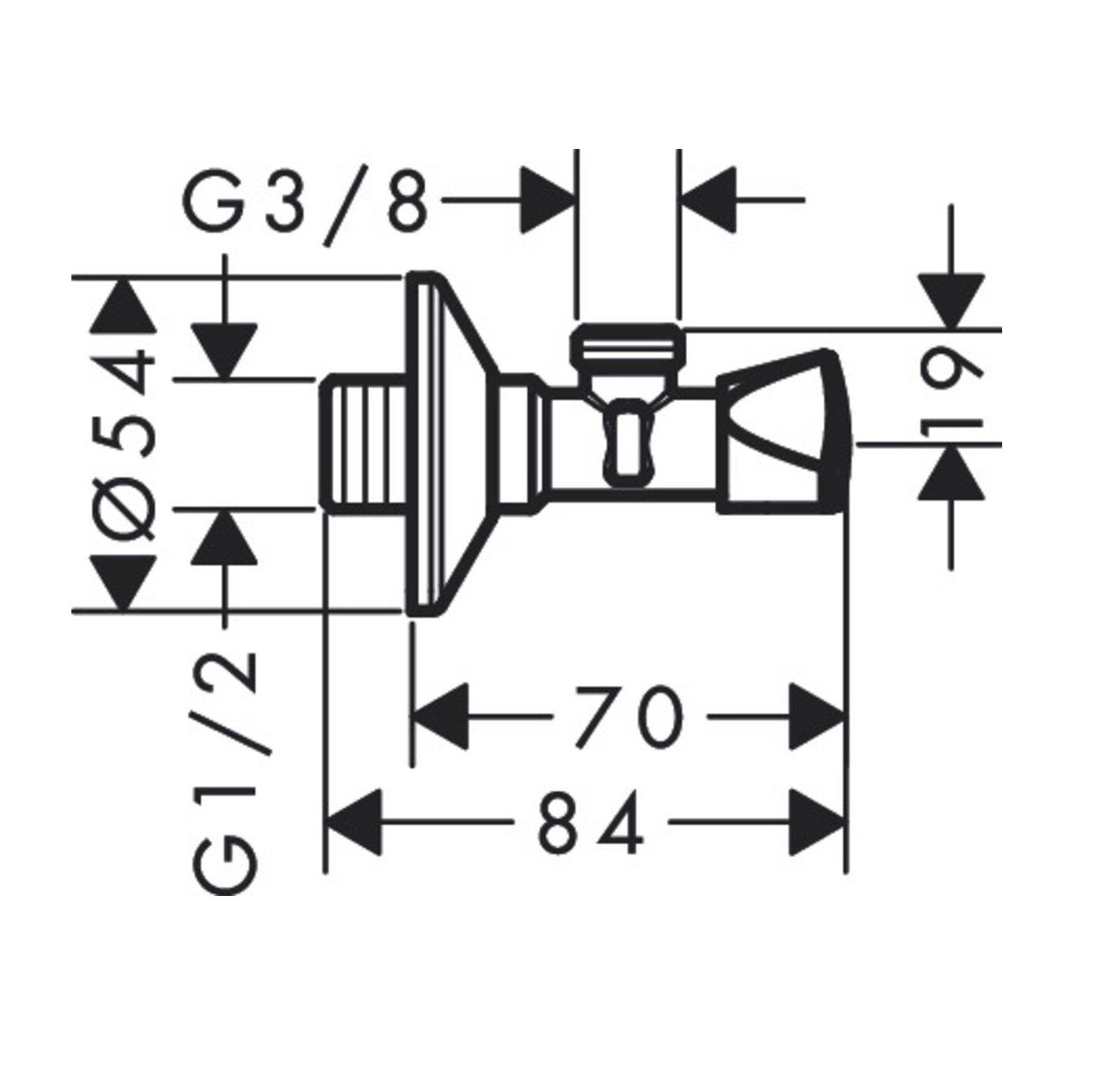 AXOR 51309000 Угловой вентиль для подключения смесителя (хром). Ввод измерения соединения: G½, соединительный размер выходного отверстия: 3/8, упаковочная единица: 1 шт. Гарантия 5 лет. Германия.