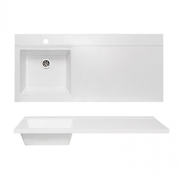 Умывальник из литьевого мрамора имеет ассиметричную форму. Полочка справа позволяет разместить на умывальнике все необходимые аксессуары, а глубокая чаша удобна в использовании. Для монтажа раковины на тумбу необходимо дополнительно под крыло установить кронштейн. Кронштейн в комплектацию не входит, приобретается отдельно.