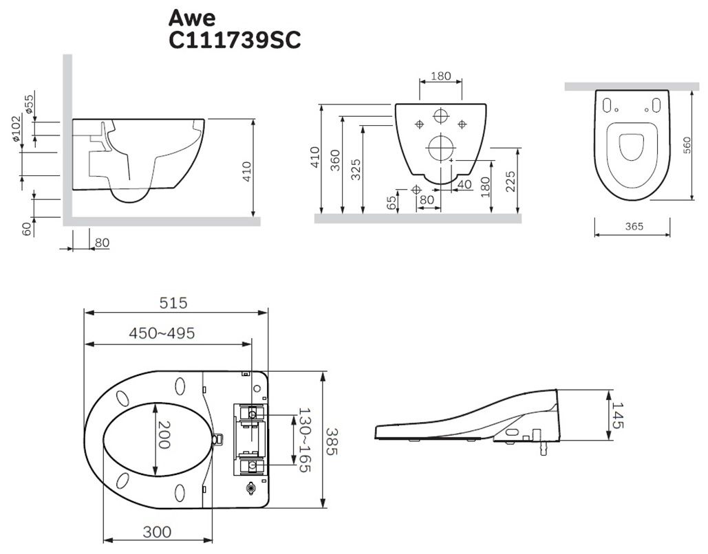 Подвесной унитаз Awe в комплекте с электронным биде CleanCareНичто не нарушает чистоту линий – полностью скрытое крепление керамики, скрытый подвод воды и электричестваКрышка-биде идеально сочетается по форме с керамикой Awe- пульт дистанционного управления- режимы: душ для задней части тела, дамский душ и массажный душ- индивидуальная регулировка температуры воды, фена, поверхности сиденья, а также положения и мощности форсунки- самоочищающаяся форсунка- 2 индивидуально регулируемых профиля пользователя- ночная подсветка- быстросъемная- скрытый подвод воды и электричества