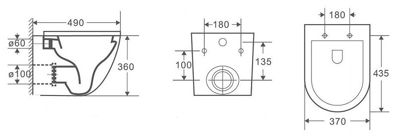 • Прилегание унитаза к стене: