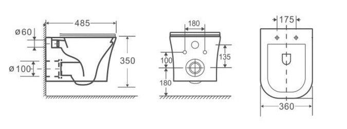 Режим смыва воды:определяется системой инсталляции
