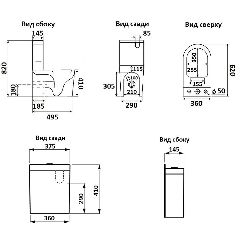 • Укороченный унитаз:
