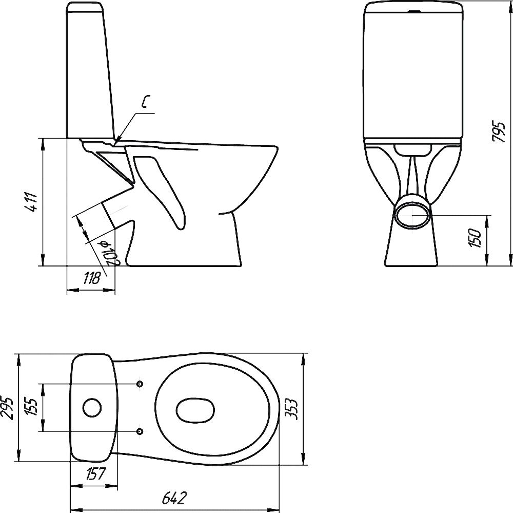 • Укороченный унитаз: