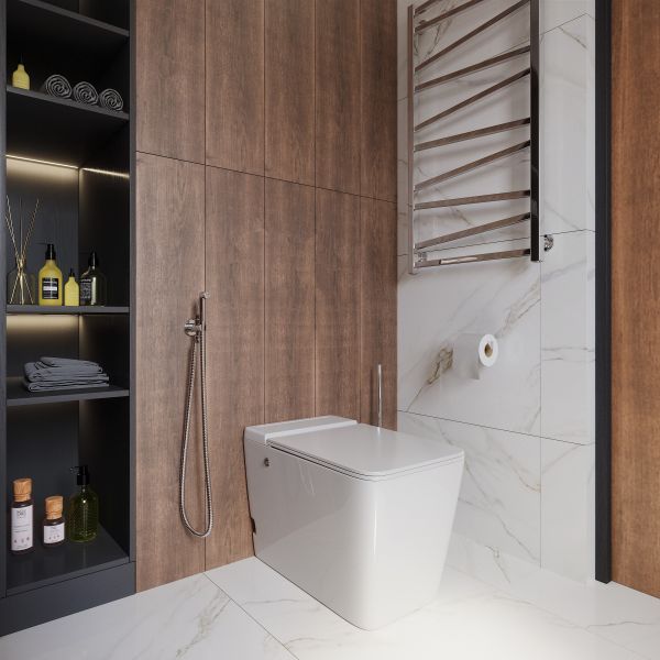 • Прилегание унитаза к стене: