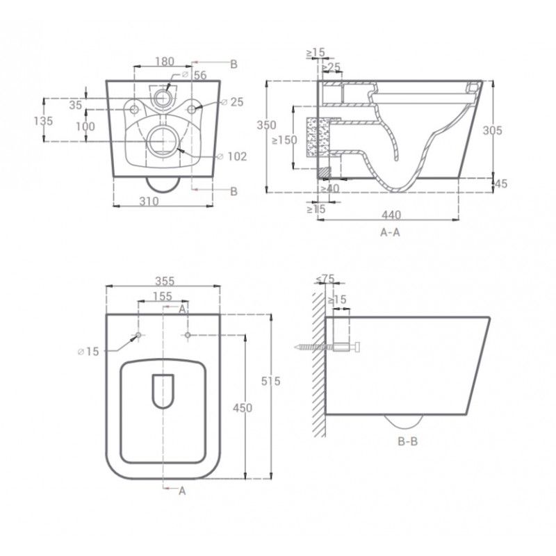 Унитаз Hansmann keramik KVADRO BLACK УНИ0019 подвеснойДлина, см51,5