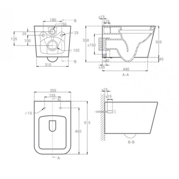 Унитаз Hansmann keramik KVADRO GREY УНИ0016 подвесной купить
