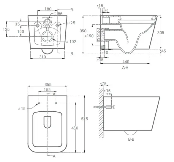 Унитаз Hansmann keramik KVADRO УНИ0003 подвесной с сиденьем МикролифтБезободковый, повышеный уровень гигиены и простая очистка. Экономия места, компактная форма. Горизонтальный выпуск 102мм. Съемная, откидная крышка, облегчает регулярный уход. Простая установка, крепления откидной крышки только сверху. Крепеж для подвесного унитаза в комплекте