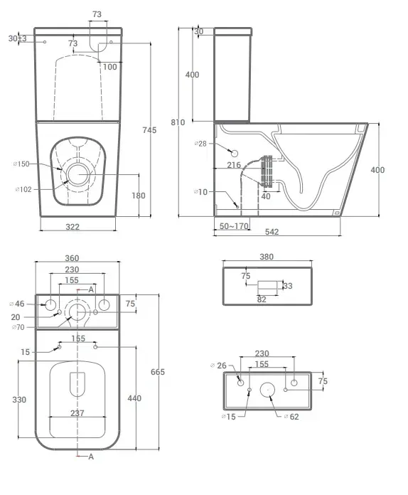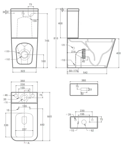 • Укороченный унитаз: