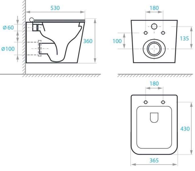 • Прилегание унитаза к стене:
