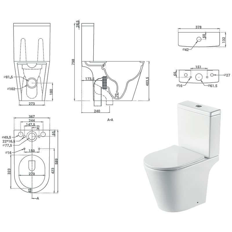 Унитаз компакт Hansmann keramik Round New УНИ0013 с бачком и сиденьем Микролифт купить