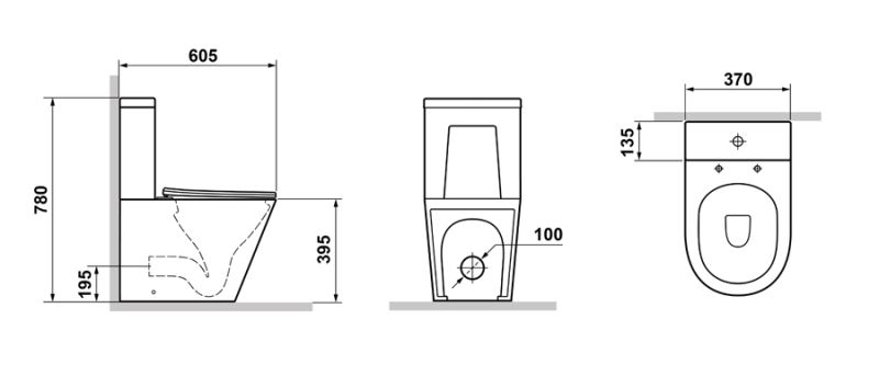 Унитаз компакт безободковый с ультратонким сидением и крышкой с функцией плавного закрытия, дюропласт