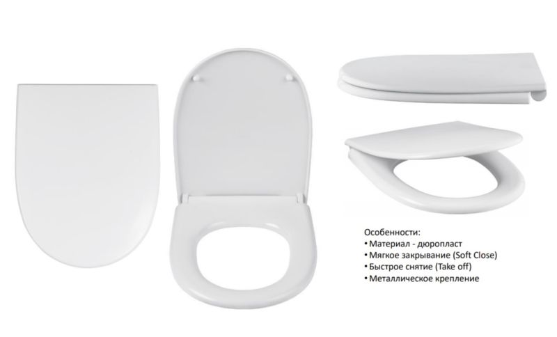 • Крышка-сиденье: дюропласт, с функцией плавного закрывания, металлические крепления
