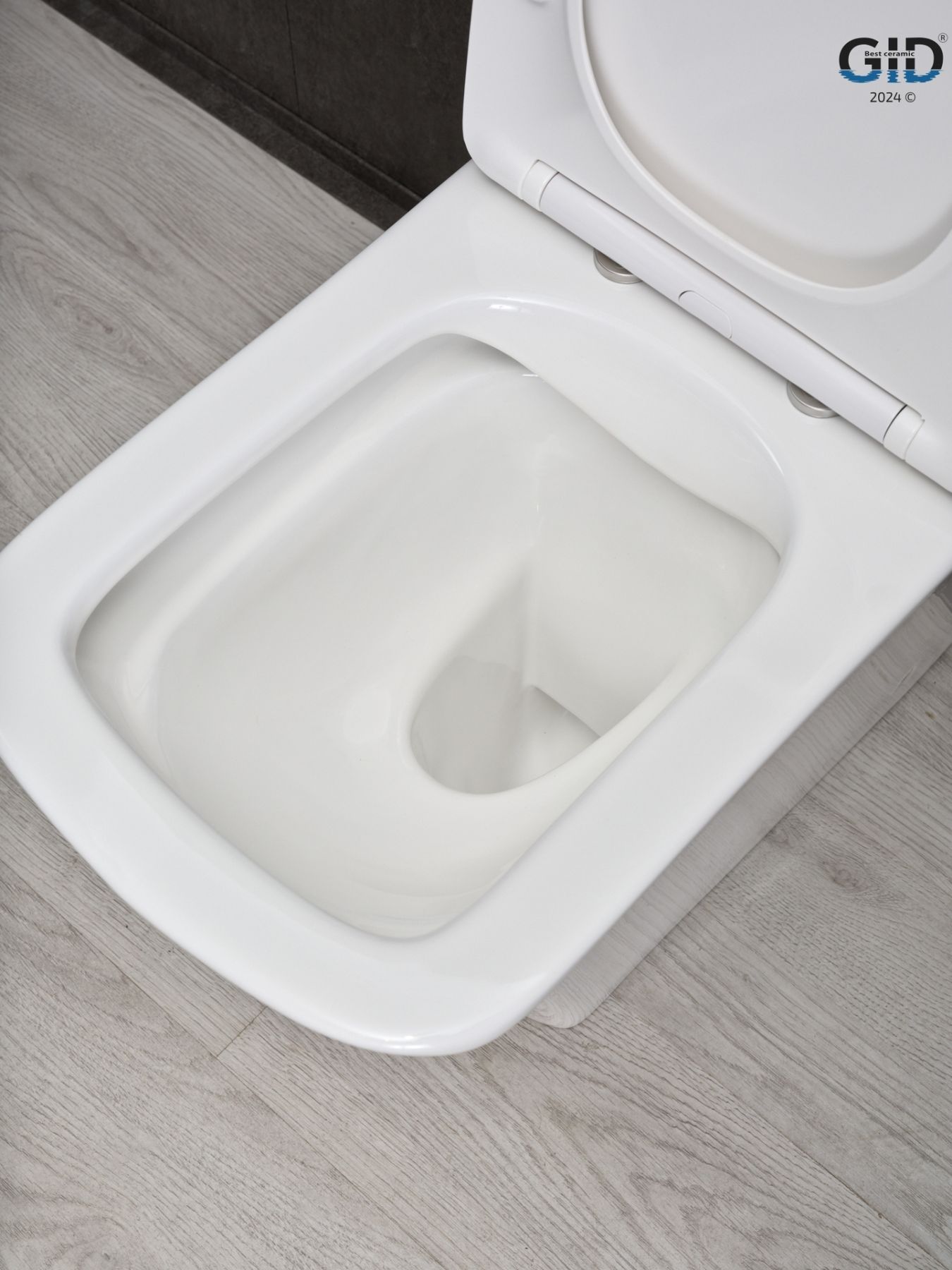 Серия Cuadrado — образец современного дизайна и испанского качества. Соответствие европейским стандартам гарантирует их долговечность. Напольный унитаз GiD Tn2184 с системой смыва от Geberit гарантирует отличную эффективность и низкий уровень шума. Модель выполнена в белом цвете из высококачественной мелкопористой керамики. Сиденье с микролифтом из дюропласта обеспечивает плавное и бесшумное закрытие. Благодаря антигрязевому покрытию и воронкообразной квадратной чаше унитаз обеспечивает высокий уровень гигиены и легкость ухода. Комплект: напольная чаша унитаза GiD Tn2184 с креплениями для скрытого монтажа; бачок с арматурой Geberit; сиденье с креплениями.