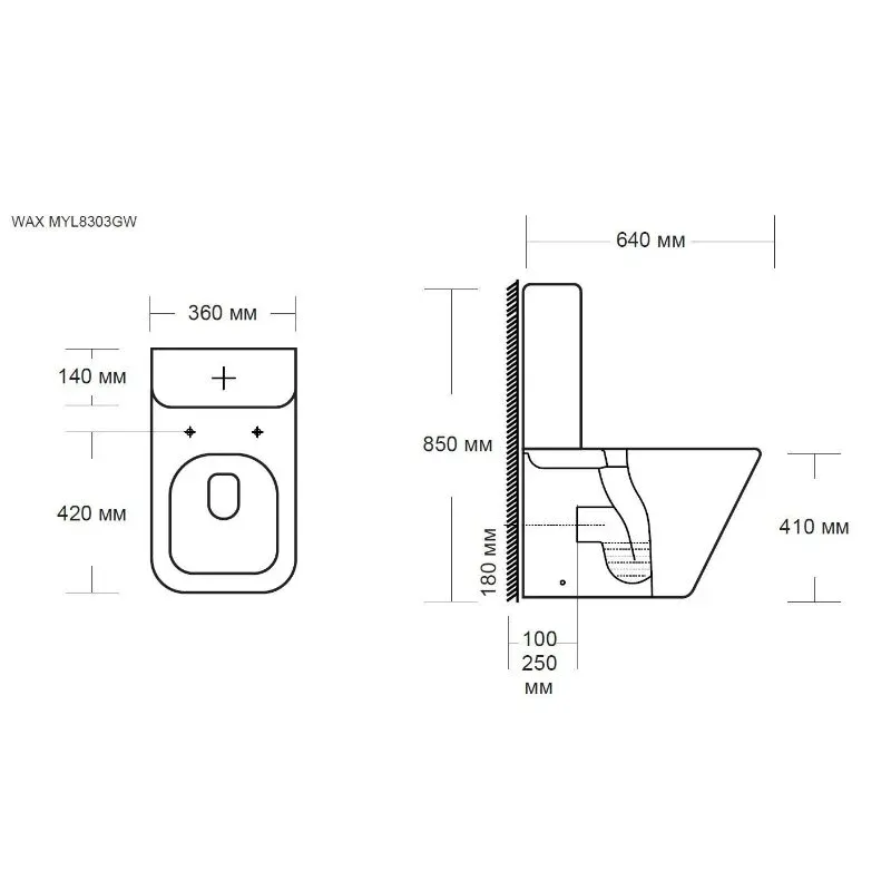 • Высота чаши унитаза 410 мм