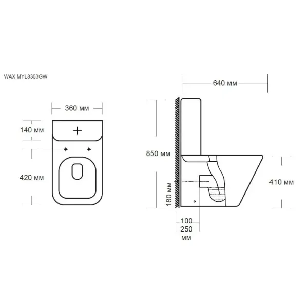 Унитаз-компакт безободковый Milleau Wax 8303, крышка микролифт, цвет белый