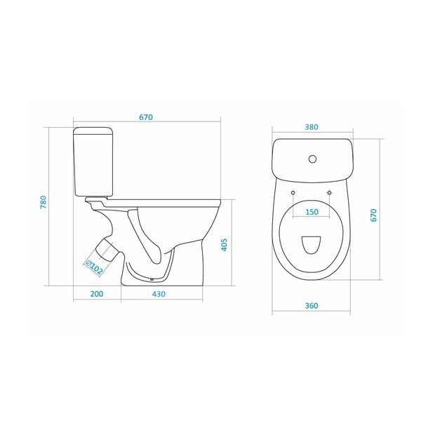 Унитаз напольный Santek - Бореаль с сиденьем дюропласт Soft-close, антивсплеск с диагональным выпуском «Антивсплеск», с двухрежимной арматурой Siamp.
