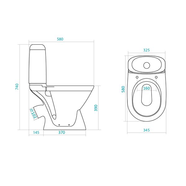 • Прилегание унитаза к стене: