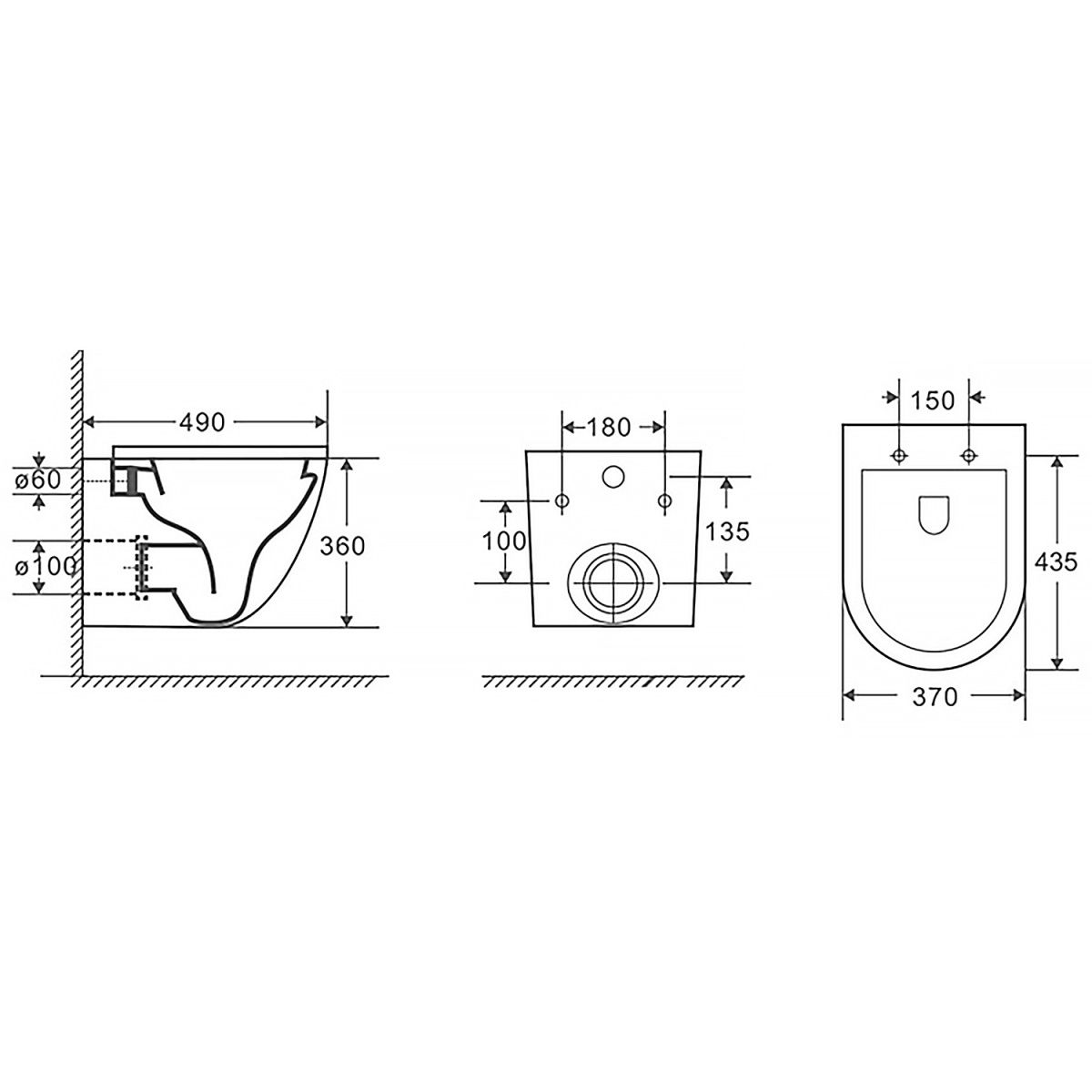 Унитаз подвесной Azario Grado 370х490х360 безободковый, с быстросъемным сидением микролифт (AZ-0046)